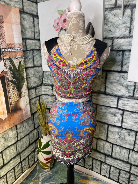 Bebe Blue Red Print 2 Piece Skirt Women sz Small