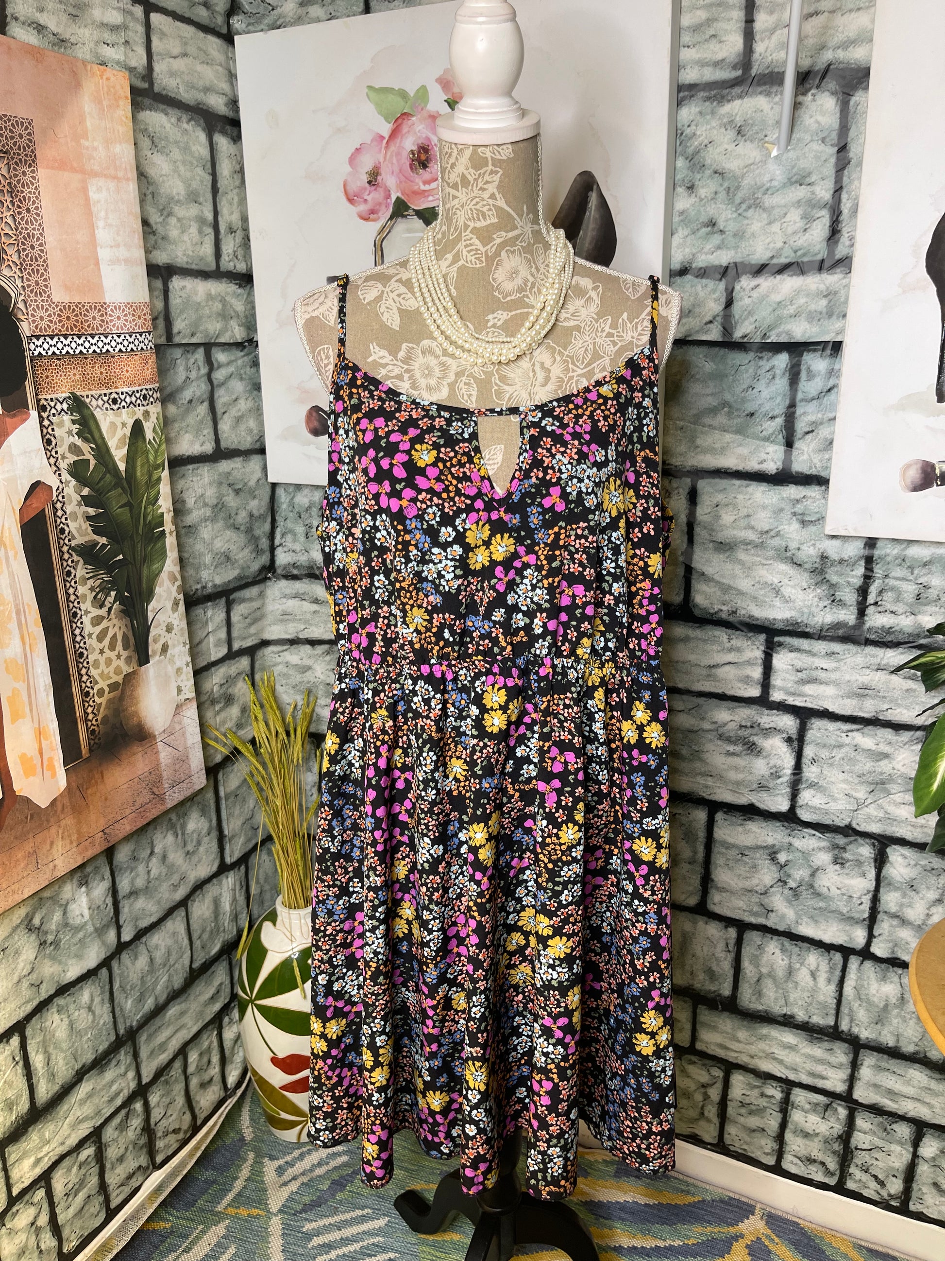 Shein Black Floral Dress Women sz 4XL