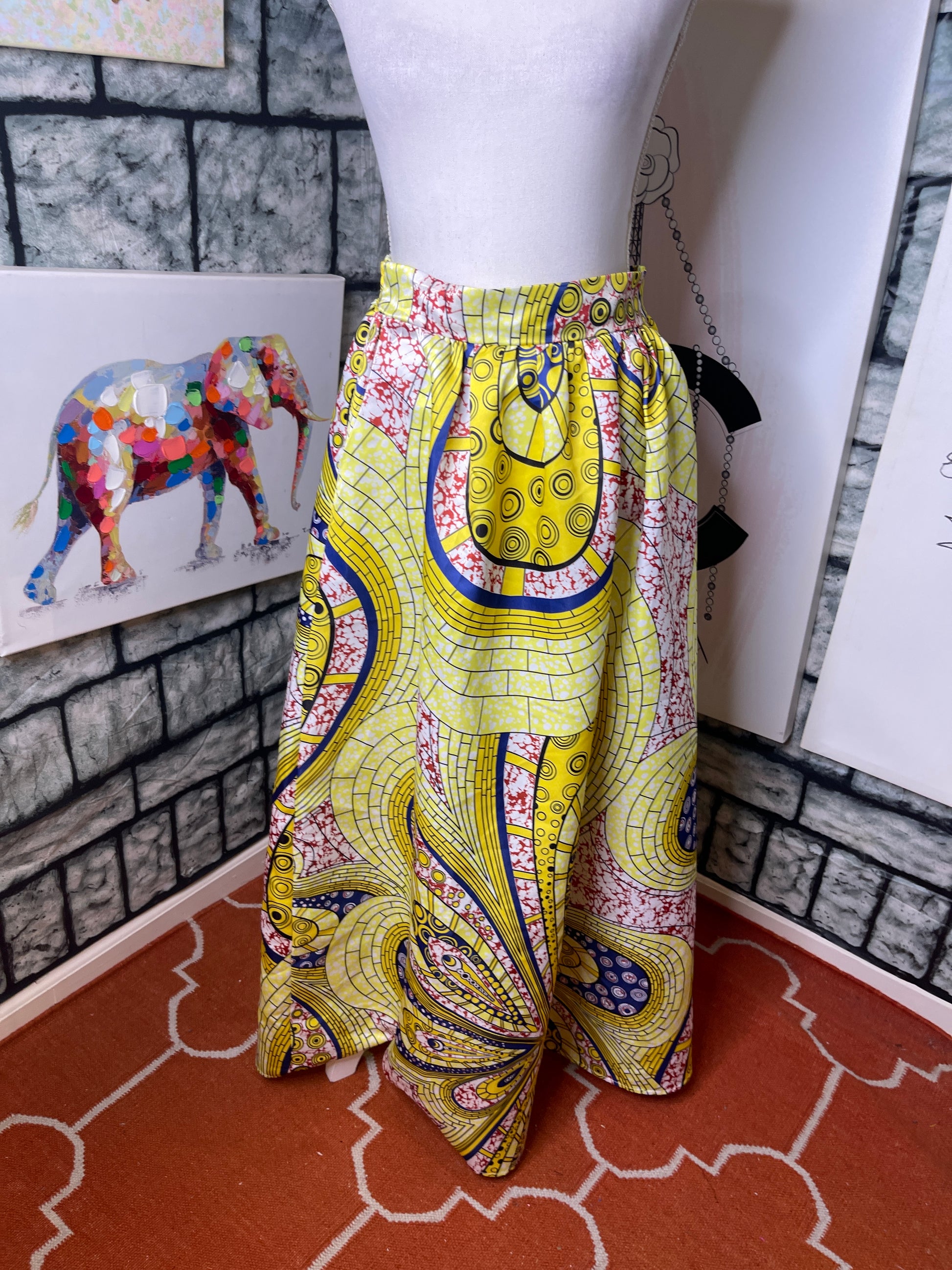 Yellow Blue Print Skirt Women sz Medium